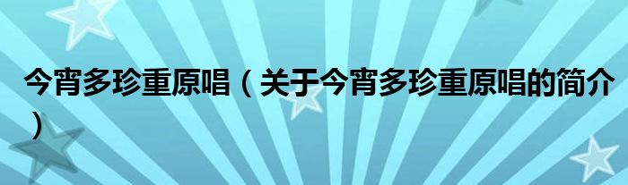 本文關(guān)于今宵多珍重原唱的簡(jiǎn)介就講解完畢,希望對(duì)大家有所幫助。