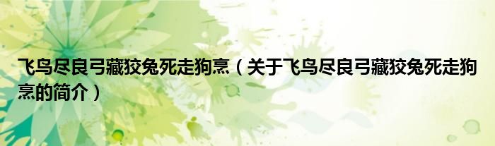 本文關于飛鳥盡良弓藏狡兔死走狗烹的簡介就講解完畢,希望對大家有所幫助。