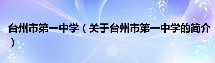 大家好,臺州市第一中學,關于臺州市第一中學的簡介很多人還不知道,現在讓我們一起來看看吧!