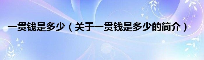 本文關于一貫錢是多少的簡介就講解完畢,希望對大家有所幫助。