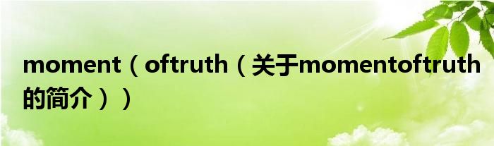 本文關(guān)于moment of truth的簡介就講解完畢,希望對大家有所幫助。