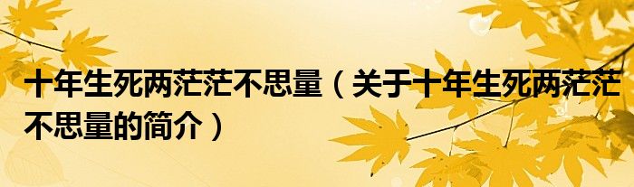 本文關于十年生死兩茫茫不思量的簡介就講解完畢,希望對大家有所幫助。