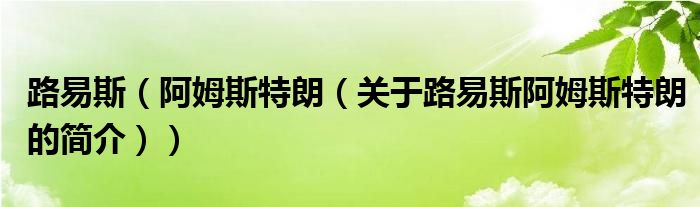 大家好,路易斯 阿姆斯特朗,關于路易斯 阿姆斯特朗的簡介很多人還不知道,現在讓我們一起來看看吧!
