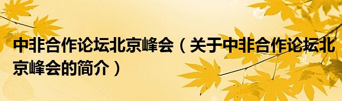 本文關于中非合作論壇北京峰會的簡介就講解完畢,希望對大家有所幫助。
