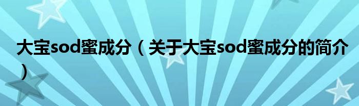 本文關于大寶sod蜜成分的簡介就講解完畢,希望對大家有所幫助。