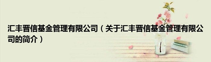 本文關(guān)于匯豐晉信基金管理有限公司的簡(jiǎn)介就講解完畢,希望對(duì)大家有所幫助。