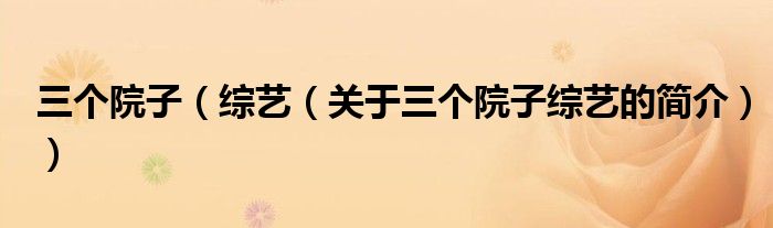 大家好,三個院子 綜藝,關于三個院子 綜藝的簡介很多人還不知道,現在讓我們一起來看看吧!
