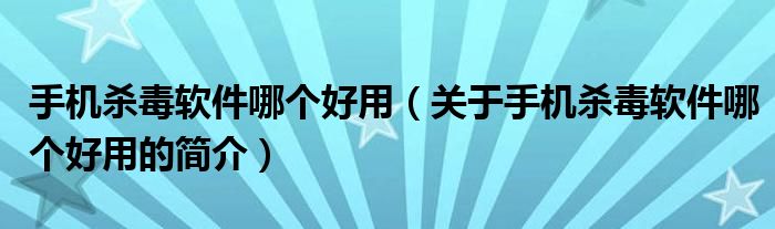 本文關于手機殺毒軟件哪個好用的簡介就講解完畢,希望對大家有所幫助。