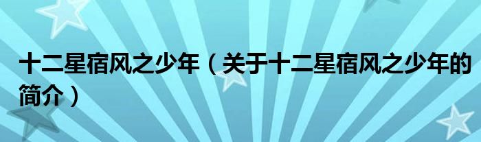 大家好,十二星宿風(fēng)之少年,關(guān)于十二星宿風(fēng)之少年的簡介很多人還不知道,現(xiàn)在讓我們一起來看看吧!