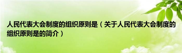 本文關于人民代表大會制度的組織原則是的簡介就講解完畢,希望對大家有所幫助。