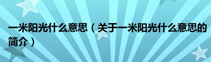 本文關于一米陽光什么意思的簡介就講解完畢,希望對大家有所幫助。