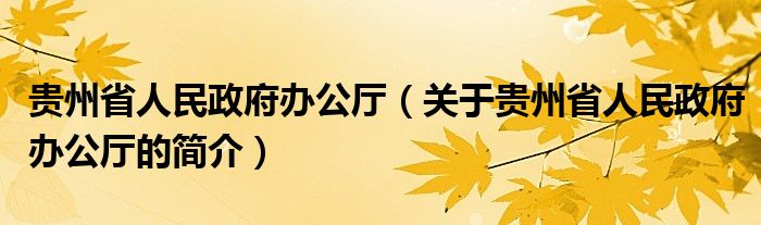 本文關于貴州省人民政府辦公廳的簡介就講解完畢,希望對大家有所幫助。