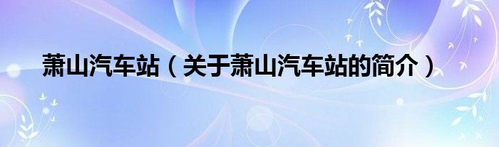 大家好,蕭山汽車站,關于蕭山汽車站的簡介很多人還不知道,現在讓我們一起來看看吧!