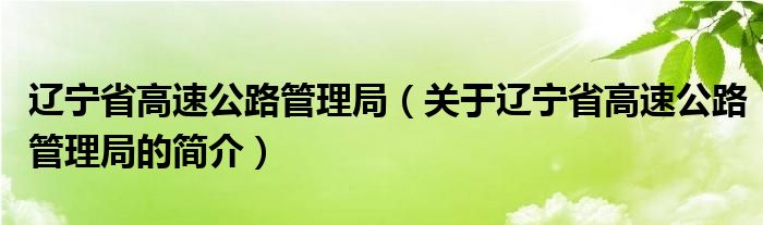 本文關于遼寧省高速公路管理局的簡介就講解完畢,希望對大家有所幫助。