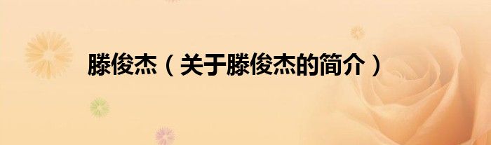 大家好,滕俊杰,關于滕俊杰的簡介很多人還不知道,現在讓我們一起來看看吧!