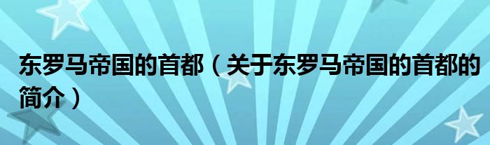 大家好,東羅馬帝國的首都,關于東羅馬帝國的首都的簡介很多人還不知道,現(xiàn)在讓我們一起來看看吧!