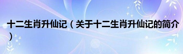 本文關于十二生肖升仙記的簡介就講解完畢,希望對大家有所幫助。