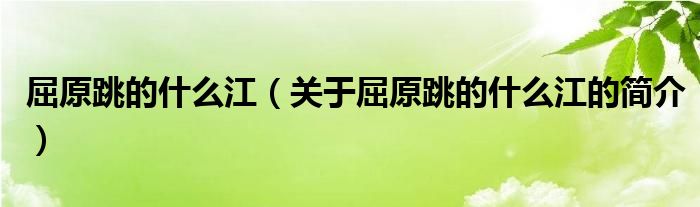 本文關(guān)于屈原跳的什么江的簡(jiǎn)介就講解完畢,希望對(duì)大家有所幫助。