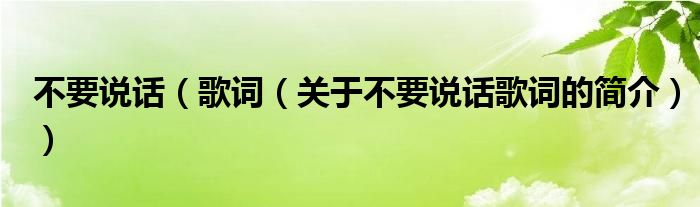 本文關于不要說話 歌詞的簡介就講解完畢,希望對大家有所幫助。