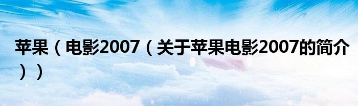 大家好,蘋果 電影 2007,關于蘋果 電影 2007的簡介很多人還不知道,現在讓我們一起來看看吧!