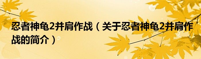 本文關于忍者神龜2并肩作戰(zhàn)的簡介就講解完畢,希望對大家有所幫助。