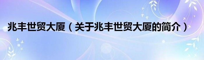 本文關(guān)于兆豐世貿(mào)大廈的簡(jiǎn)介就講解完畢,希望對(duì)大家有所幫助。