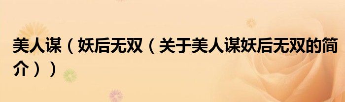 本文關于美人謀 妖后無雙的簡介就講解完畢,希望對大家有所幫助。