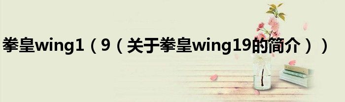 本文關(guān)于拳皇wing1 9的簡介就講解完畢,希望對大家有所幫助。