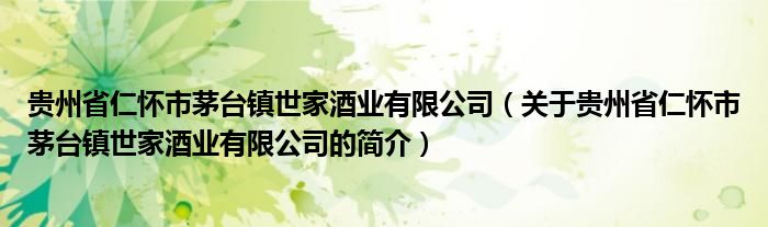 本文關于貴州省仁懷市茅臺鎮世家酒業有限公司的簡介就講解完畢,希望對大家有所幫助。