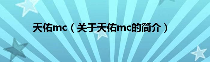 本文關(guān)于天佑mc的簡介就講解完畢,希望對大家有所幫助。