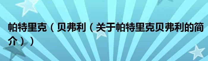 本文關于帕特里克 貝弗利的簡介就講解完畢,希望對大家有所幫助。