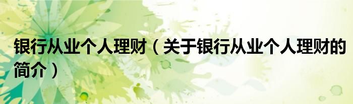 本文關于銀行從業個人理財的簡介就講解完畢,希望對大家有所幫助。