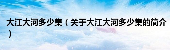 本文關(guān)于大江大河多少集的簡(jiǎn)介就講解完畢,希望對(duì)大家有所幫助。