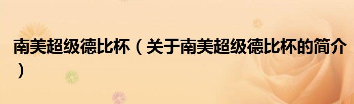 本文關(guān)于南美超級(jí)德比杯的簡(jiǎn)介就講解完畢,希望對(duì)大家有所幫助。
