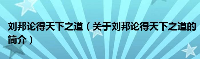 本文關(guān)于劉邦論得天下之道的簡介就講解完畢,希望對大家有所幫助。