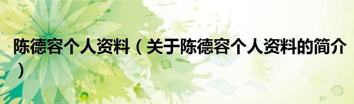 本文關(guān)于陳德容個(gè)人資料的簡介就講解完畢,希望對大家有所幫助。