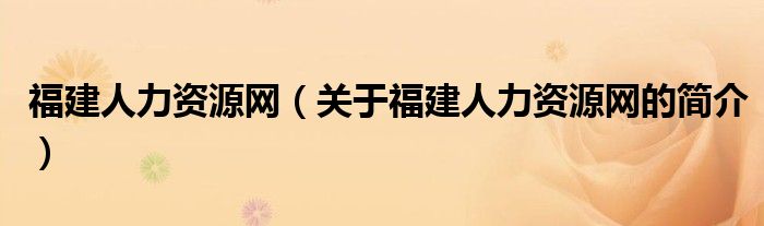 本文關(guān)于福建人力資源網(wǎng)的簡(jiǎn)介就講解完畢,希望對(duì)大家有所幫助。
