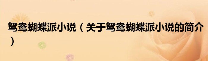 大家好,鴛鴦蝴蝶派小說,關(guān)于鴛鴦蝴蝶派小說的簡介很多人還不知道,現(xiàn)在讓我們一起來看看吧!