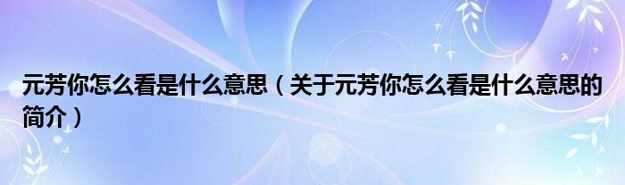 本文關(guān)于元芳你怎么看是什么意思的簡(jiǎn)介就講解完畢,希望對(duì)大家有所幫助。