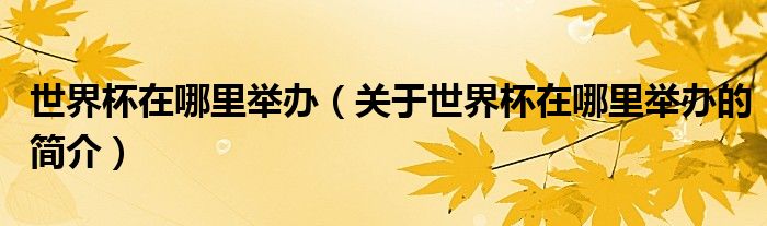 本文關于世界杯在哪里舉辦的簡介就講解完畢,希望對大家有所幫助。