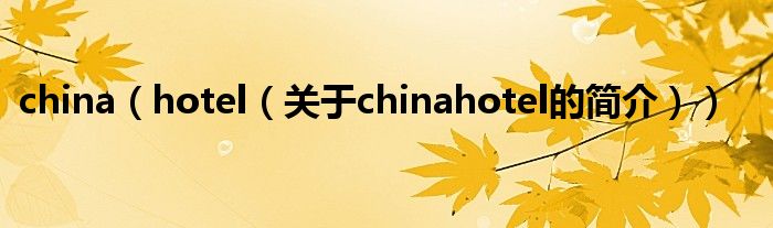 本文關于china hotel的簡介就講解完畢,希望對大家有所幫助。