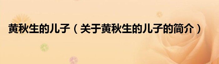 大家好,黃秋生的兒子,關于黃秋生的兒子的簡介很多人還不知道,現在讓我們一起來看看吧!