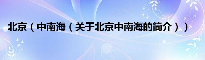 大家好,北京 中南海,關于北京 中南海的簡介很多人還不知道,現在讓我們一起來看看吧!