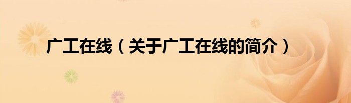 大家好,廣工在線,關于廣工在線的簡介很多人還不知道,現在讓我們一起來看看吧!