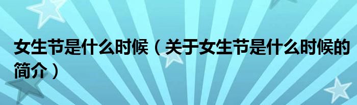 本文關(guān)于女生節(jié)是什么時(shí)候的簡(jiǎn)介就講解完畢,希望對(duì)大家有所幫助。