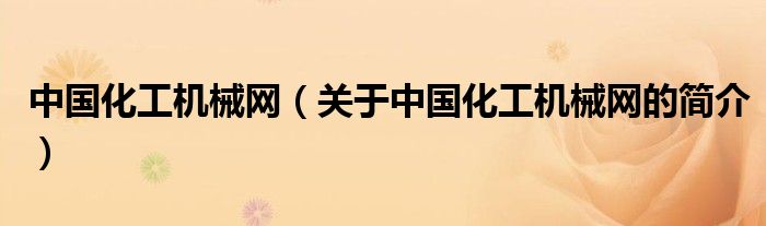 本文關(guān)于中國化工機械網(wǎng)的簡介就講解完畢,希望對大家有所幫助。