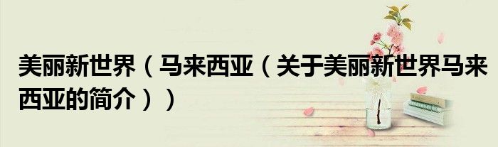 大家好,美麗新世界 馬來西亞,關(guān)于美麗新世界 馬來西亞的簡介很多人還不知道,現(xiàn)在讓我們一起來看看吧!