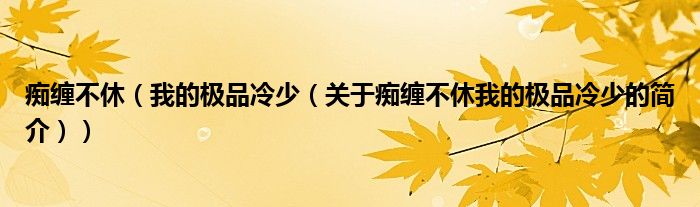 本文關(guān)于癡纏不休 我的極品冷少的簡介就講解完畢,希望對大家有所幫助。