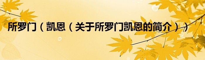 本文關于所羅門 凱恩的簡介就講解完畢,希望對大家有所幫助。