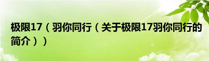 大家好,極限17 羽你同行,關(guān)于極限17 羽你同行的簡介很多人還不知道,現(xiàn)在讓我們一起來看看吧!